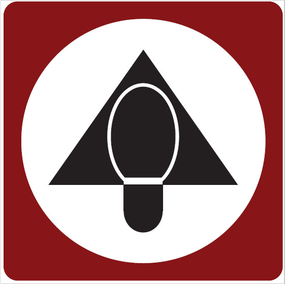Die Route ist mit Schildern markiert, auf denen schwarze Schuhsohlen abgebildet sind.