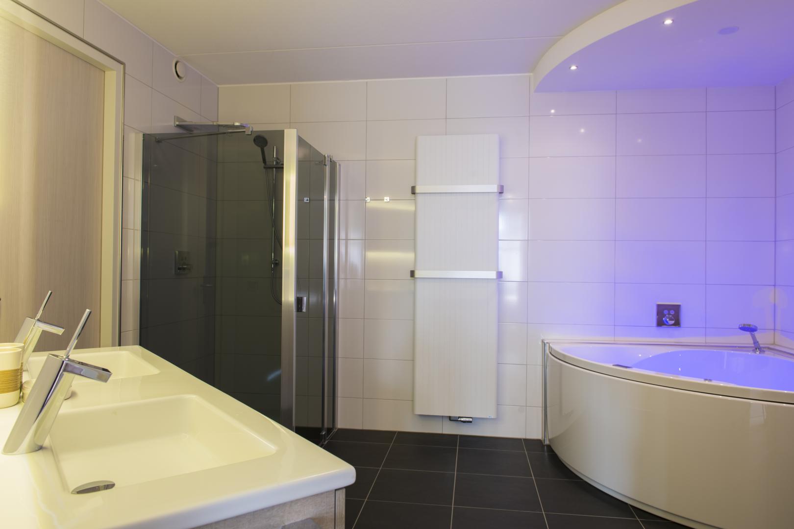 - Bad mit Whirlpool für zwei Personen, Dusche, Waschbecken und Toilette